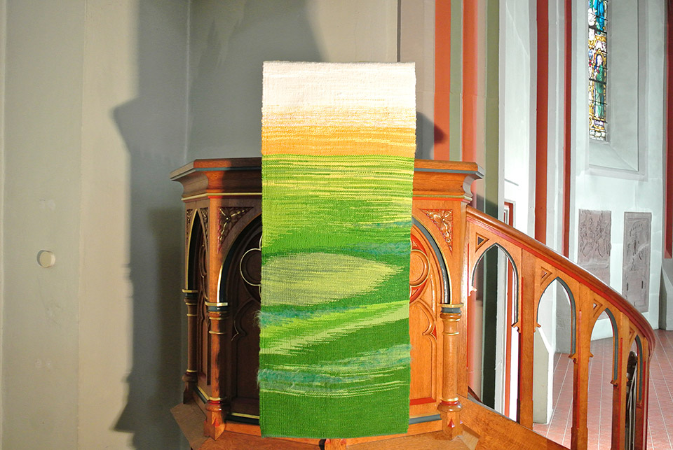 Hierbei verbinden sich handwerkliche Technik und freies künstlerisches Gestalten einer "Bild" -fläche auf dem inhaltlichen Hintergrund der Kirchenjahresfeste unter Einbeziehung des gesamten Kirchenraumes.
